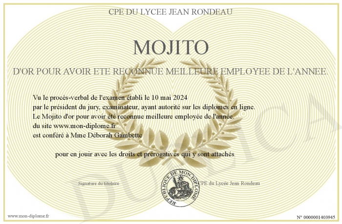 Envoyez par email votre Mojito d'or pour avoir été reconnue meilleure employée de l'année. personalisé