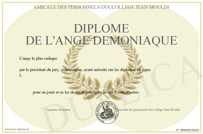Envoyez par email votre Diplôme de l'ange démoniaque personalisé