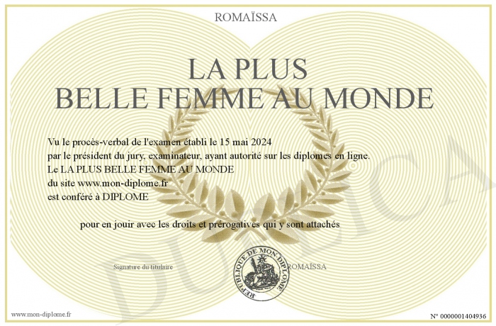 Envoyez par email votre LA PLUS BELLE FEMME AU MONDE personalisé
