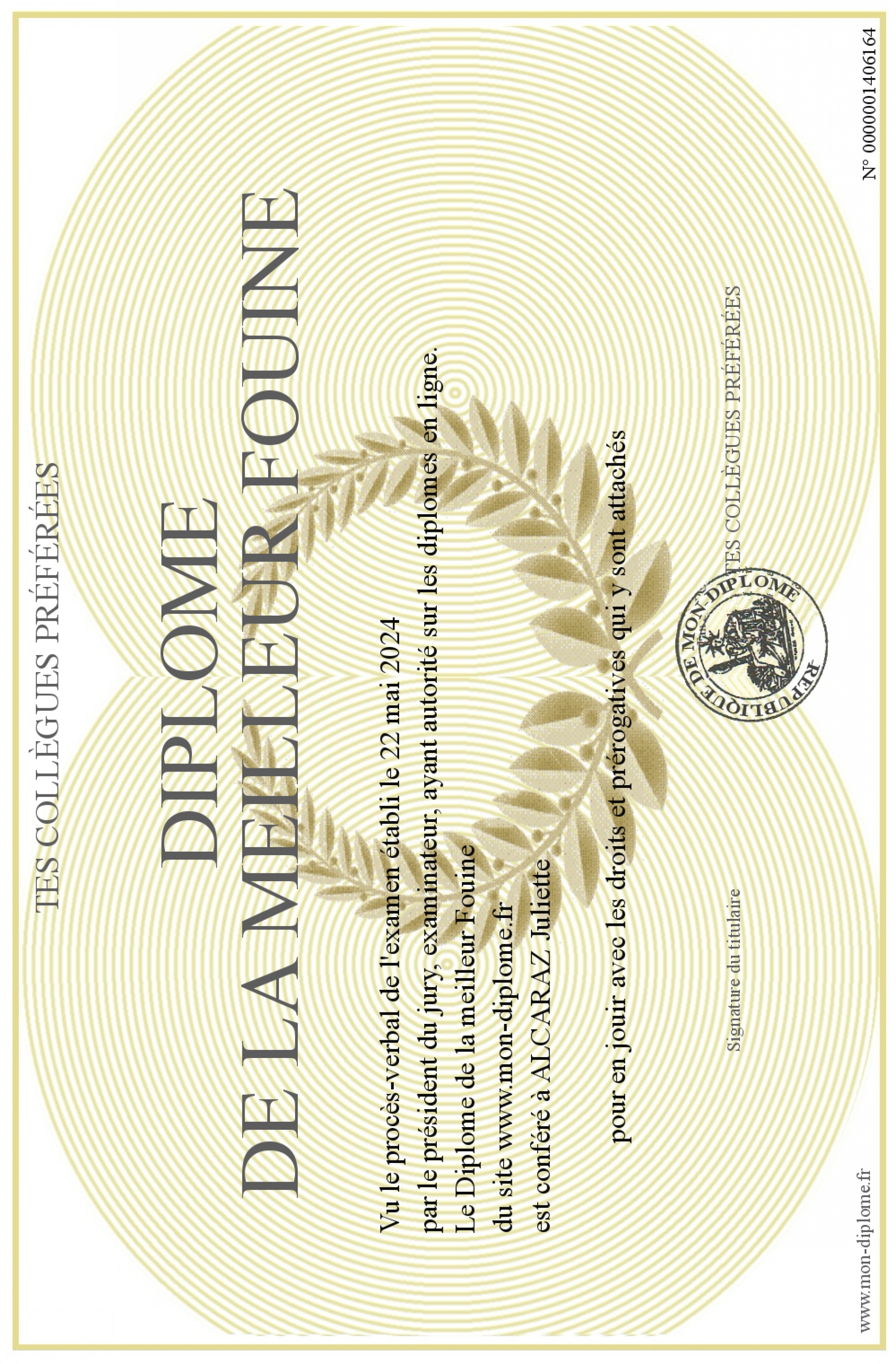 Envoyez par email votre Diplôme de la meilleur Fouine personalisé