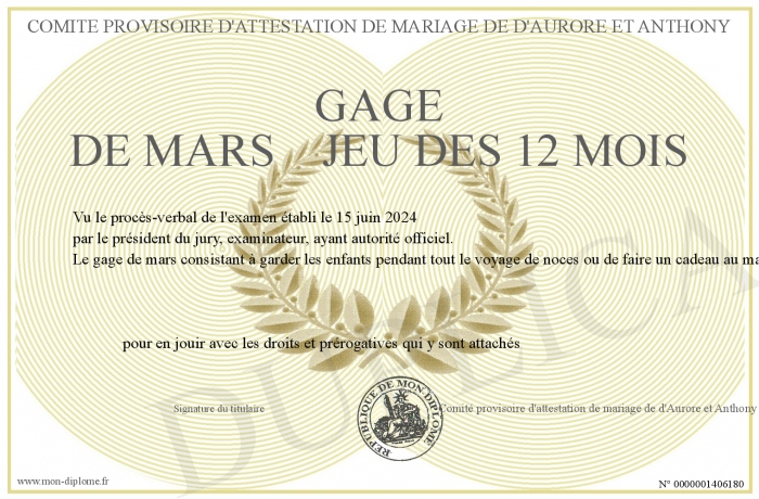 Envoyez par email votre Gage de Mars jeu des 12 mois personalisé