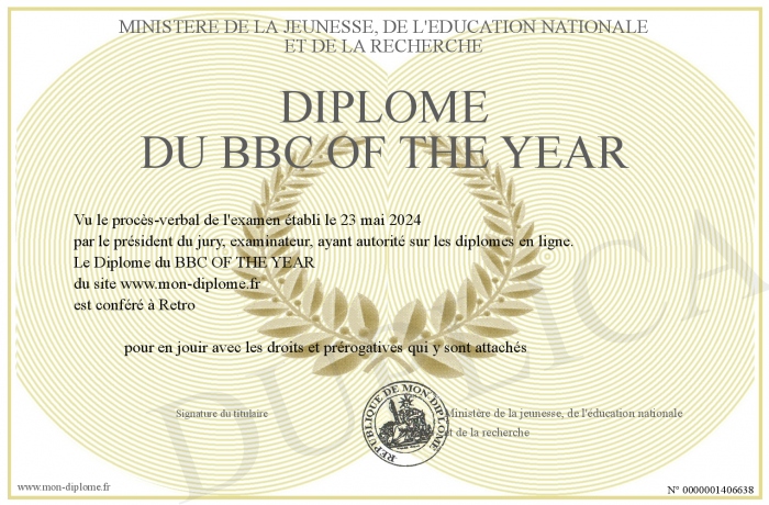 Envoyez par email votre Diplôme du BBC OF THE YEAR personalisé
