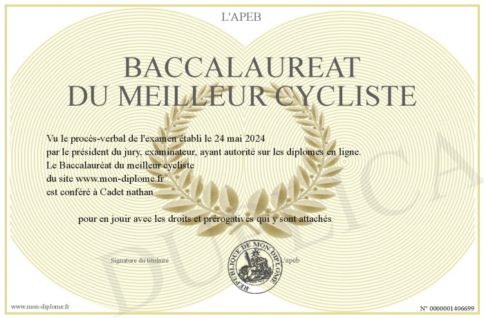 Envoyez par email votre Baccalauréat du meilleur cycliste personalisé