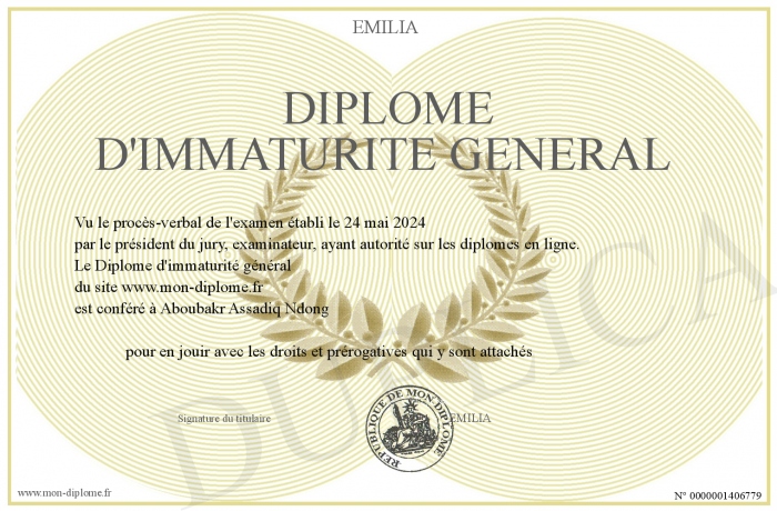Envoyez par email votre Diplôme d'immaturité général personalisé