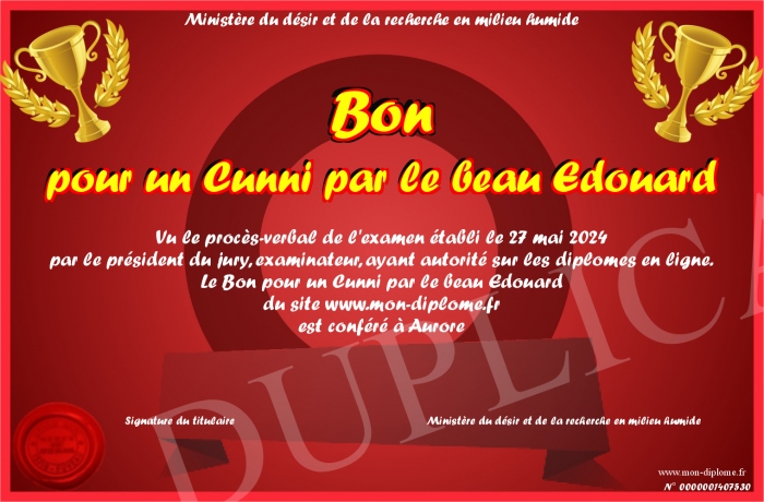 Envoyez par email votre Bon pour un Cunni par le beau Edouard personalisé