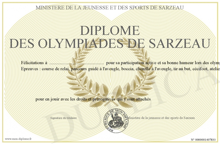 Envoyez par email votre Diplôme des Olympiades de Sarzeau personalisé