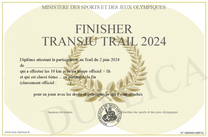 Envoyez par email votre Finisher Transju Trail 2024 personalisé