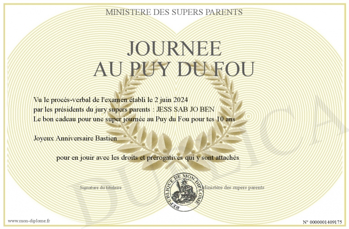 Envoyez par email votre JOURNEE AU PUY DU FOU personalisé