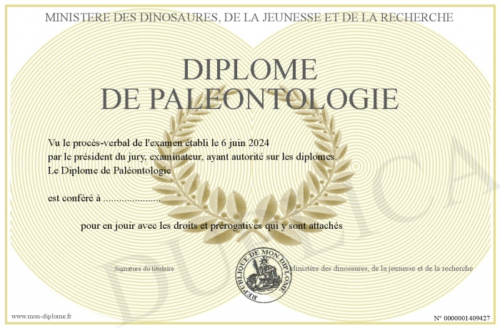 Envoyez par email votre Diplôme de Paléontologie personalisé