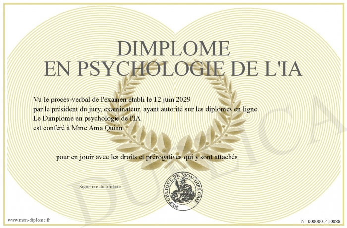 Envoyez par email votre Dimplome en psychologie de l'IA personalisé