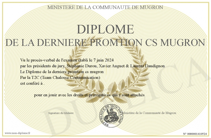 Envoyez par email votre Diplôme de la derniere promtion cs mugron personalisé