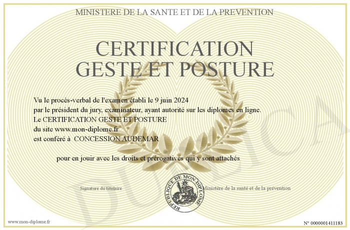 Envoyez par email votre CERTIFICATION GESTE ET POSTURE personalisé