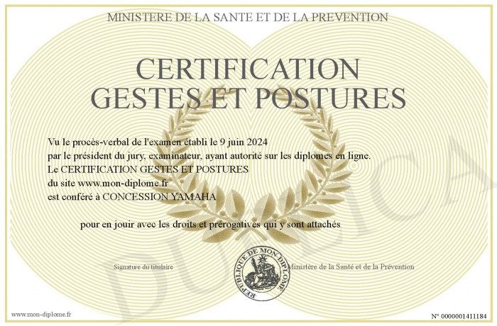 Envoyez par email votre CERTIFICATION GESTES ET POSTURES personalisé