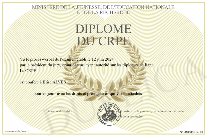 Envoyez par email votre Diplôme du CRPE personalisé