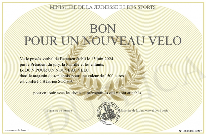 Envoyez par email votre BON POUR UN NOUVEAU VELO personalisé