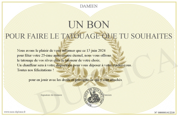 Envoyez par email votre Un bon pour faire le tatouage que tu souhaites personalisé