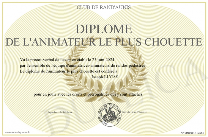 Envoyez par email votre Diplôme de l'animateur le plus chouette personalisé