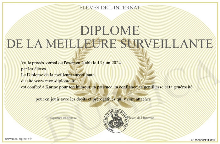 Envoyez par email votre Diplôme de la meilleure surveillante personalisé