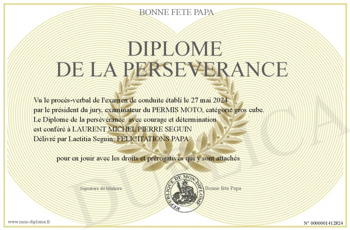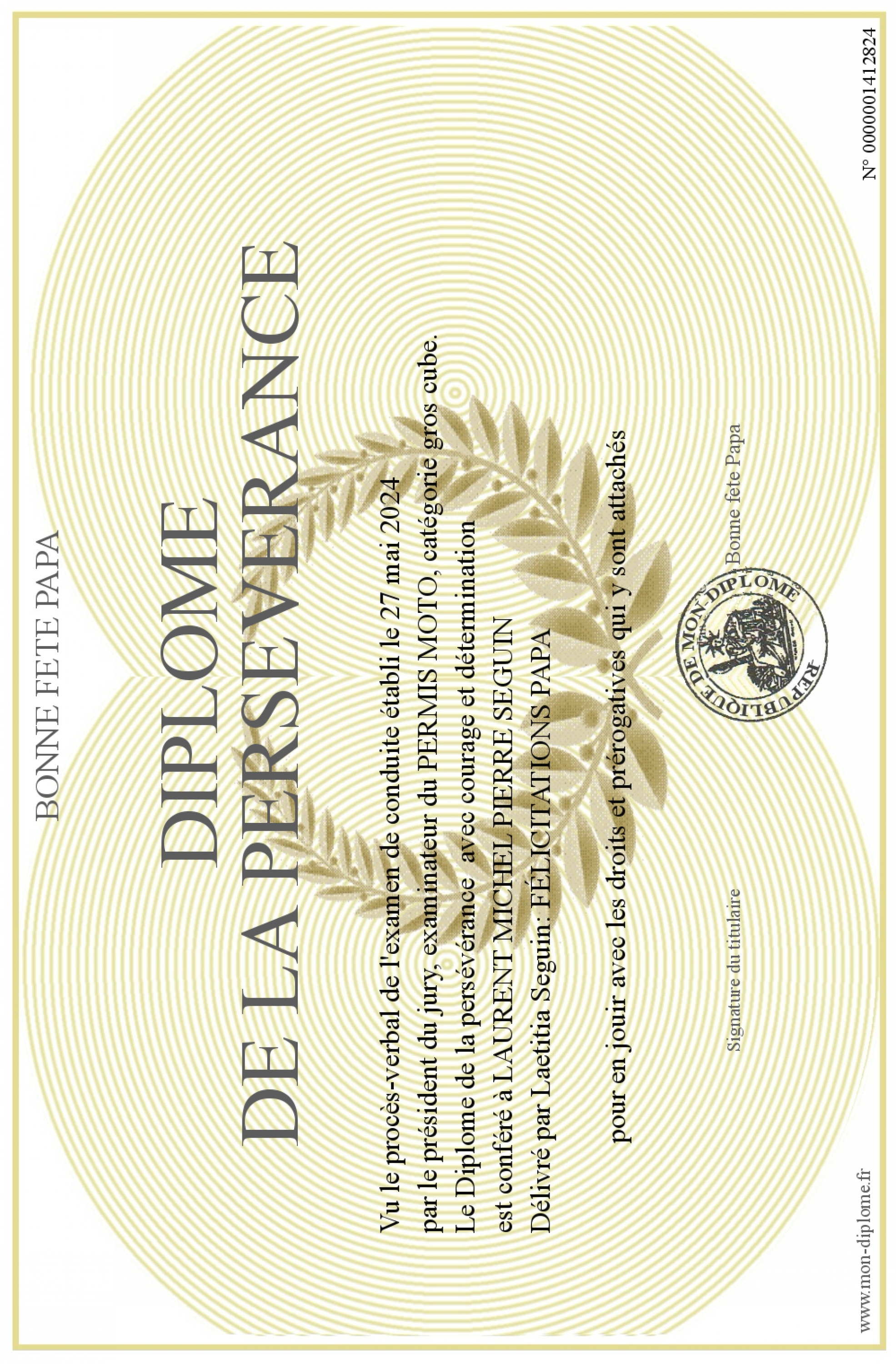Envoyez par email votre Diplôme de la persévérance personalisé