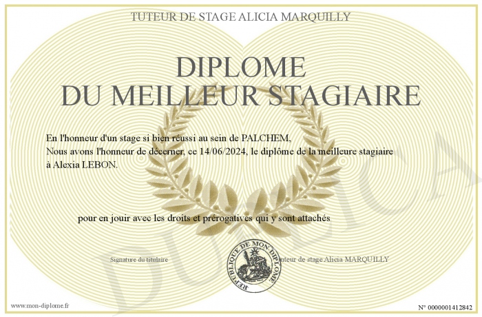 Envoyez par email votre Diplôme du meilleur stagiaire personalisé