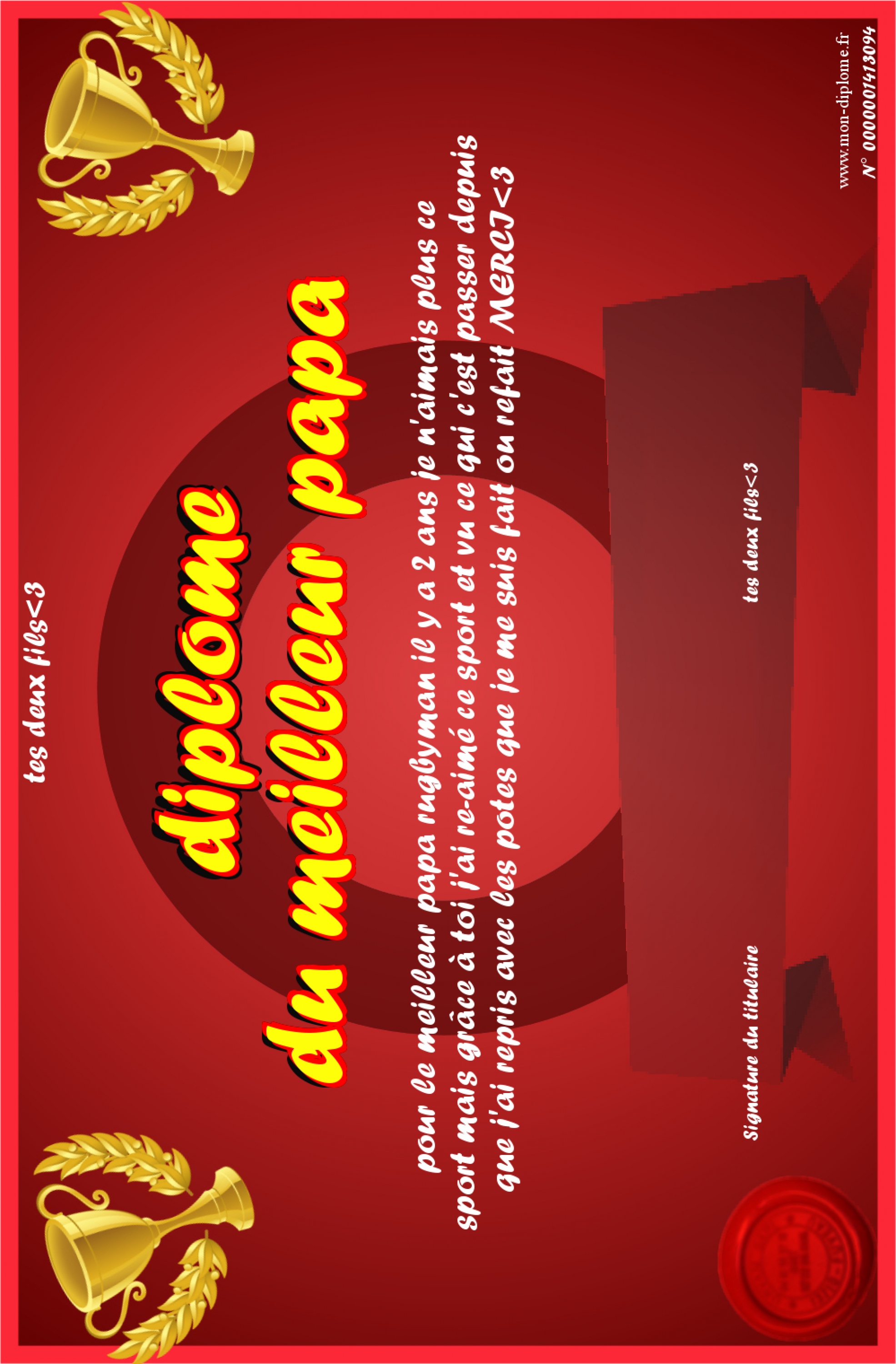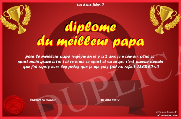 Envoyez par email votre diplôme du meilleur papa personalisé