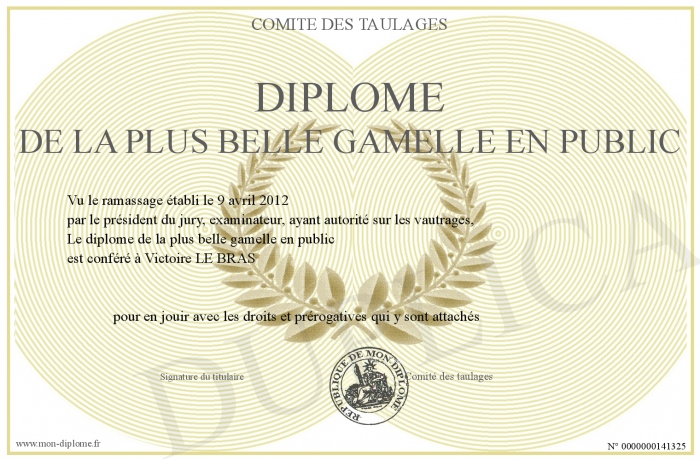 Envoyez par email votre diplôme de la plus belle gamelle en public personalisé