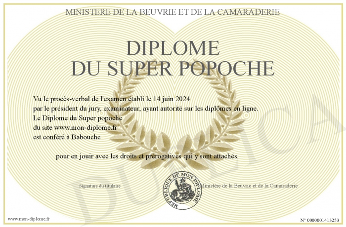 Envoyez par email votre Diplôme du Super popoche personalisé