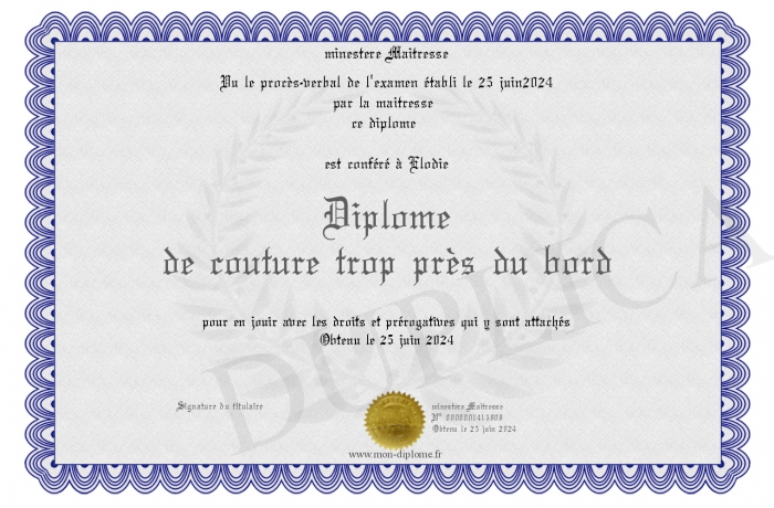 Envoyez par email votre Diplôme de couture trop près du bord personalisé