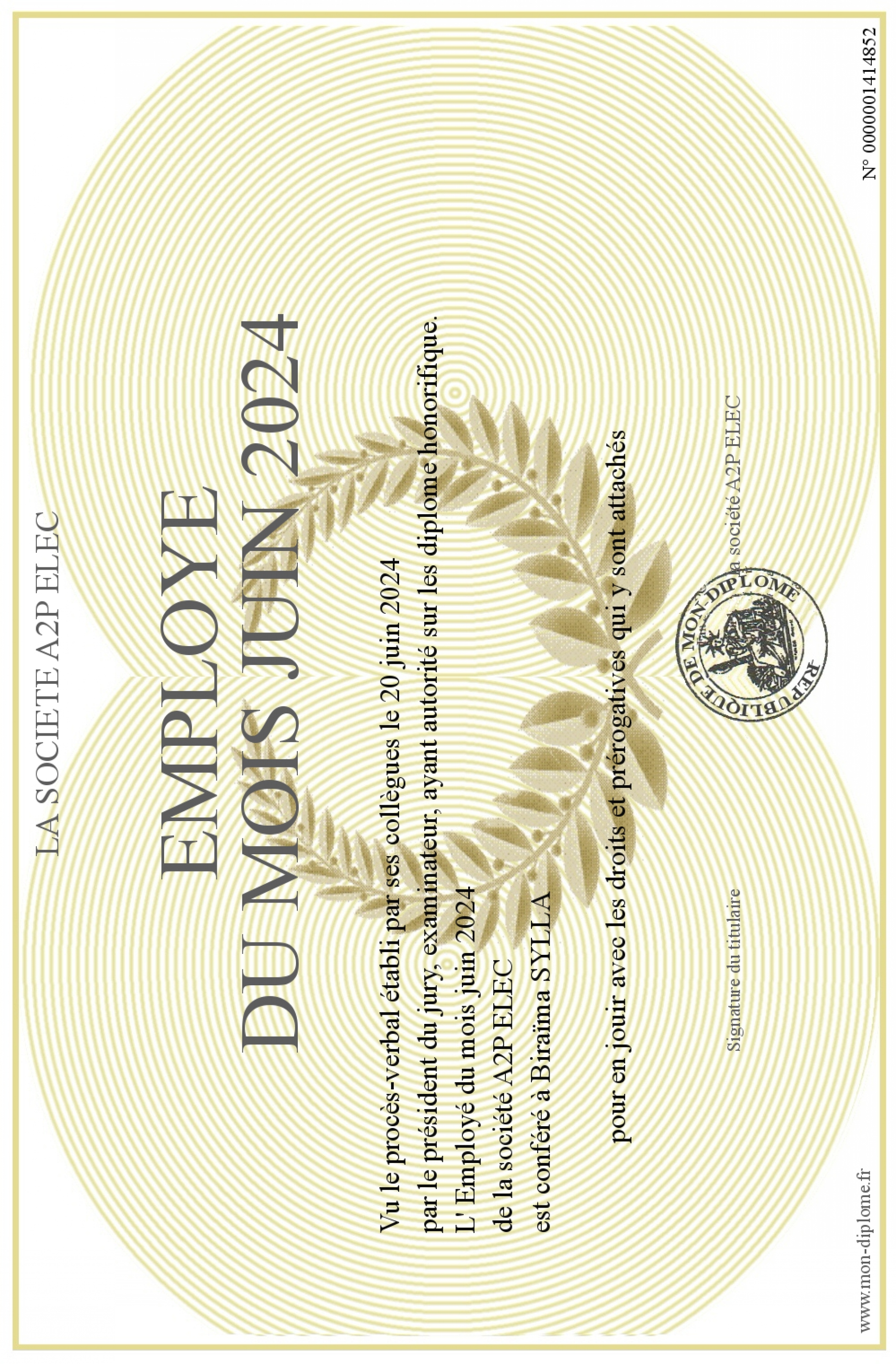 Envoyez par email votre Employé du mois juin 2024 personalisé