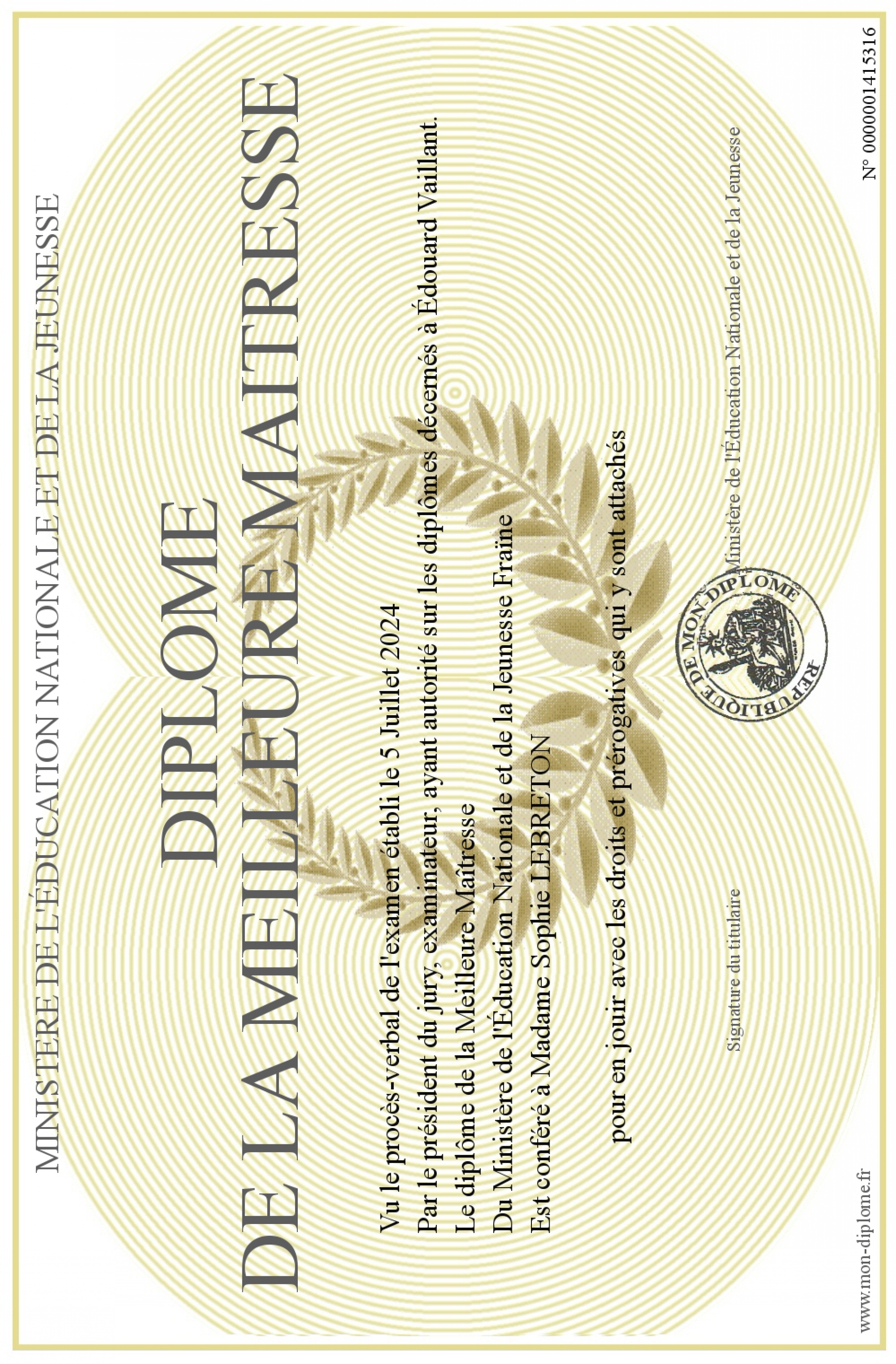 Envoyez par email votre Diplôme de la meilleure maitresse personalisé
