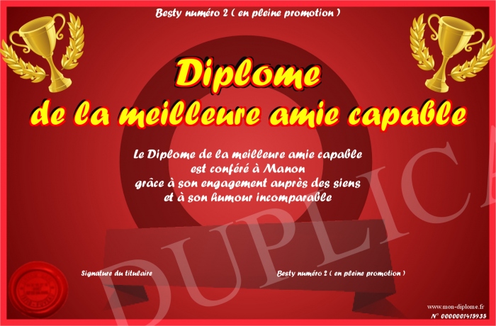 Envoyez par email votre Diplôme de la meilleure amie capable personalisé