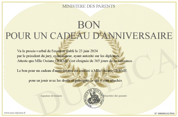 Envoyez par email votre BON POUR UN CADEAU D'ANNIVERSAIRE personalisé