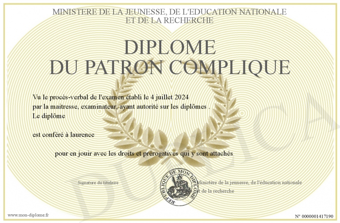 Envoyez par email votre Diplôme du patron compliqué personalisé