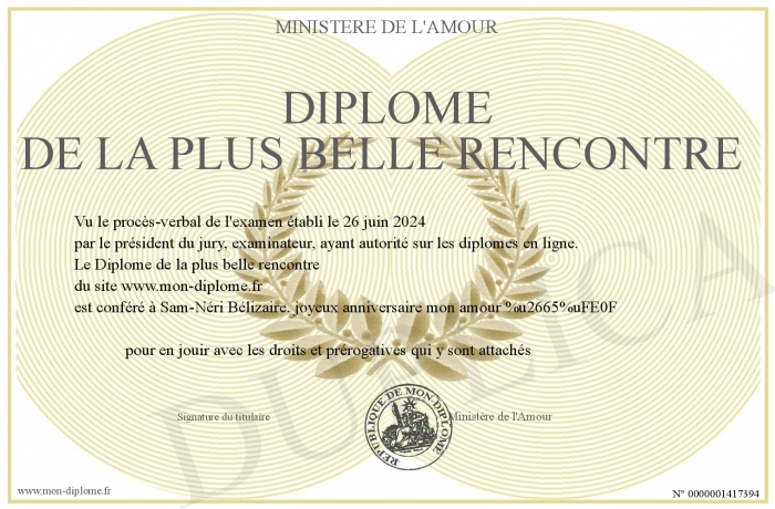 Envoyez par email votre Diplôme de la plus belle rencontre personalisé