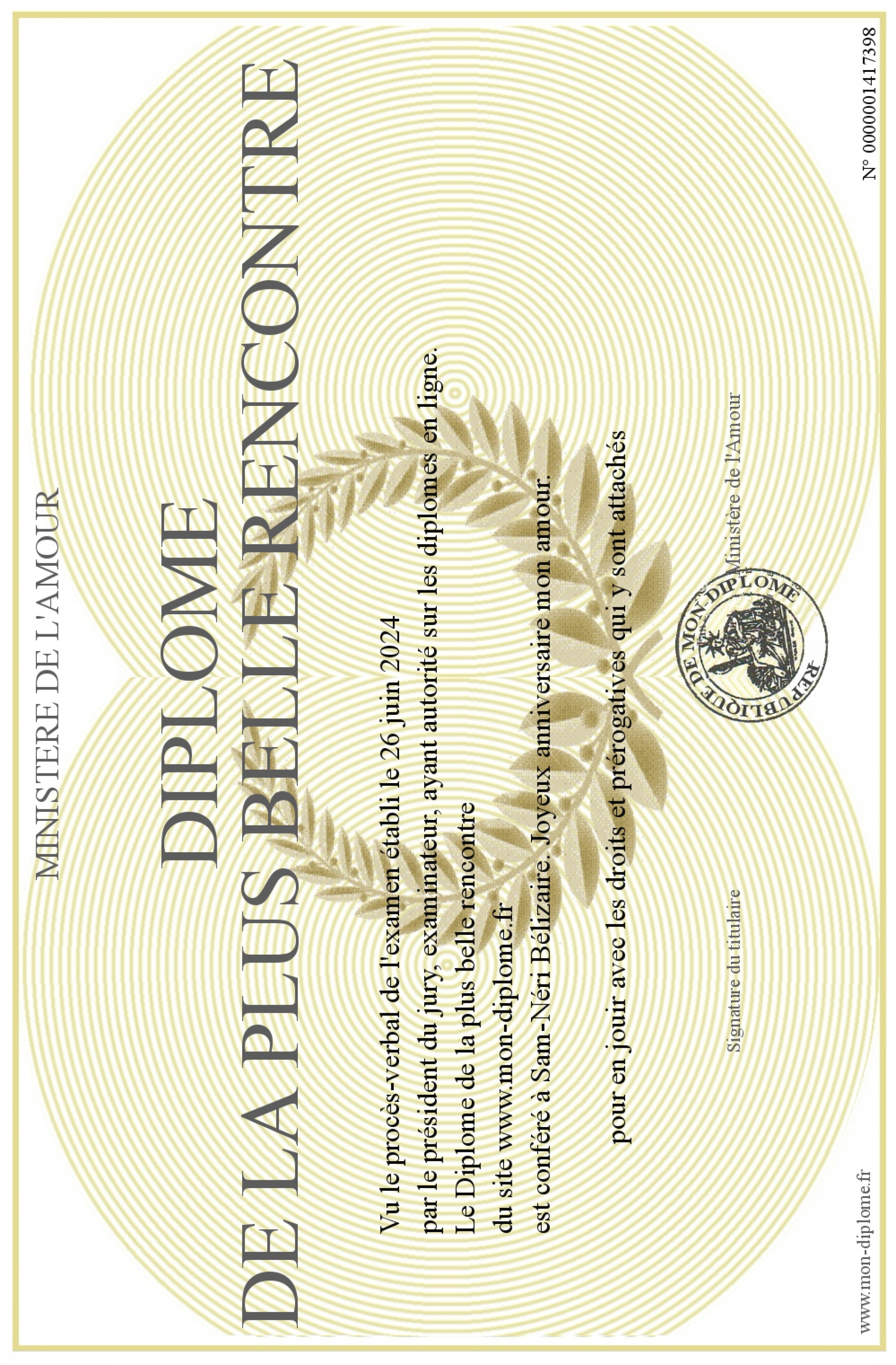 Envoyez par email votre Diplôme de la plus belle rencontre personalisé
