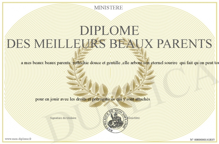 Envoyez par email votre Diplôme des meilleurs beaux parents personalisé