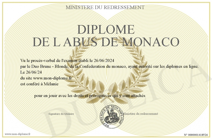 Envoyez par email votre Diplôme de l abus de Monaco personalisé
