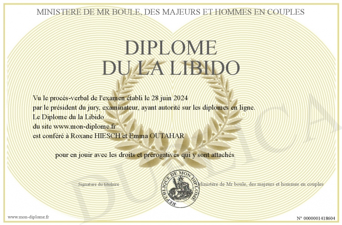 Envoyez par email votre Diplôme du la Libido personalisé