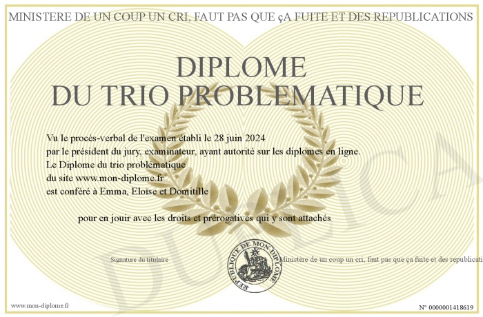 Envoyez par email votre Diplôme du trio problématique personalisé
