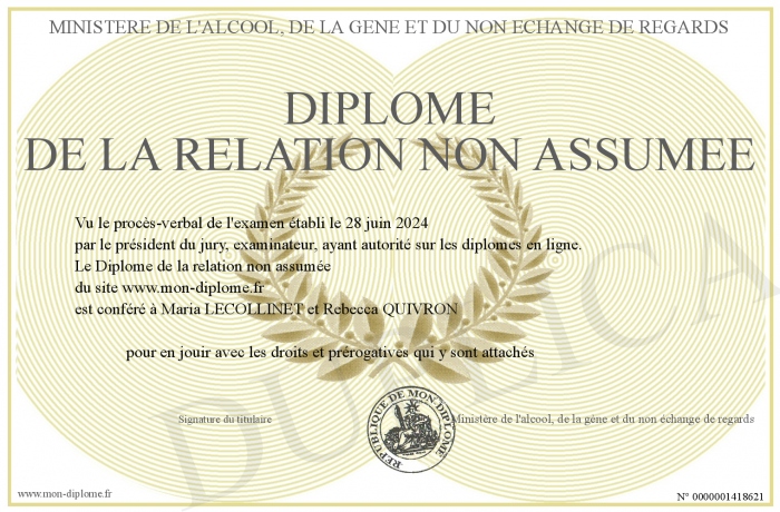 Envoyez par email votre Diplôme de la relation non assumée personalisé