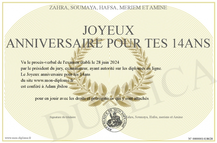 Envoyez par email votre Joyeux anniversaire pour tes 14ans personalisé