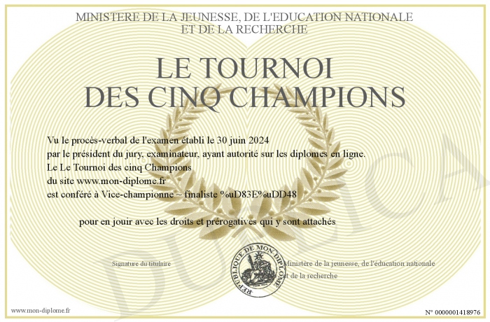 Envoyez par email votre Le Tournoi des cinq Champions personalisé
