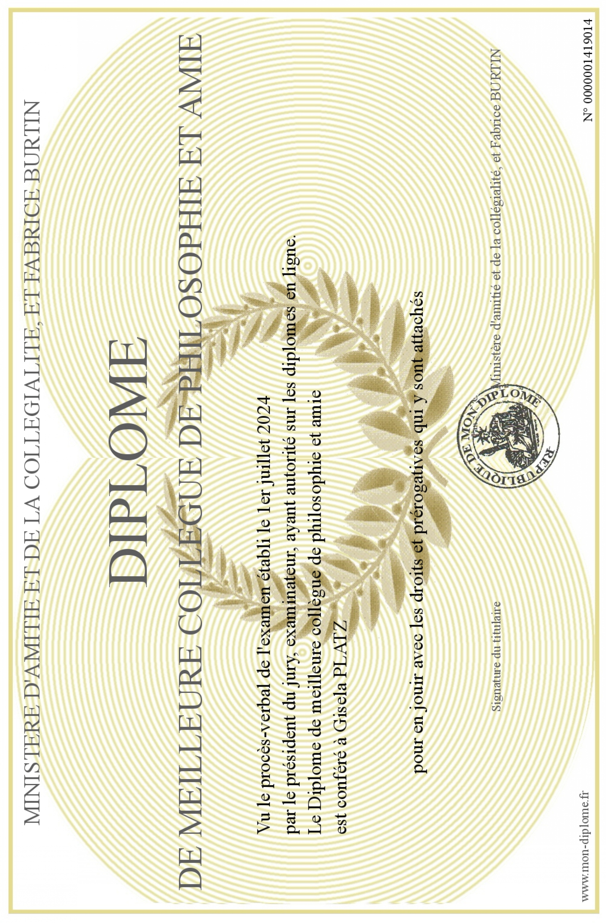 Envoyez par email votre Diplôme de meilleure collègue de philosophie et amie personalisé