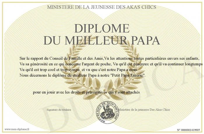 Envoyez par email votre Diplôme du Meilleur Papa personalisé