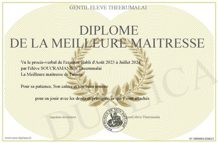 Envoyez par email votre Diplôme de la meilleure maitresse personalisé
