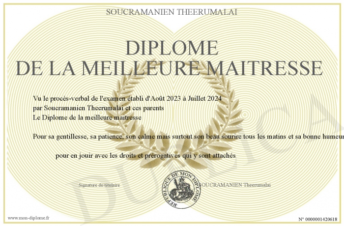 • Diplôme de la meilleure maitresse