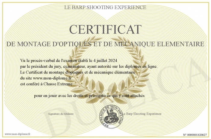 Envoyez par email votre Certificat de montage d'optiques et de mécanique élémentaire personalisé