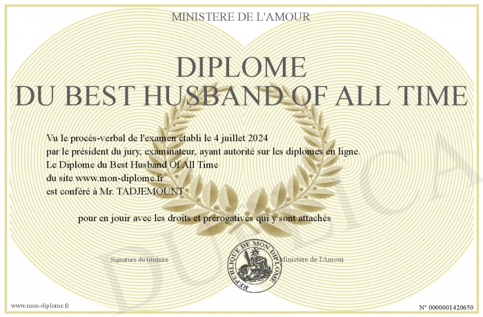 Envoyez par email votre Diplôme du Best Husband Of All Time personalisé