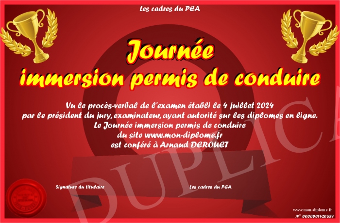 Envoyez par email votre Journée immersion permis de conduire personalisé