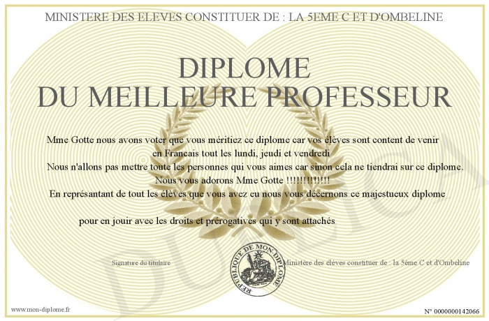 Envoyez par email votre Diplôme du Meilleure Professeur personalisé